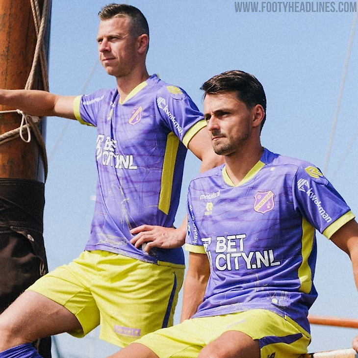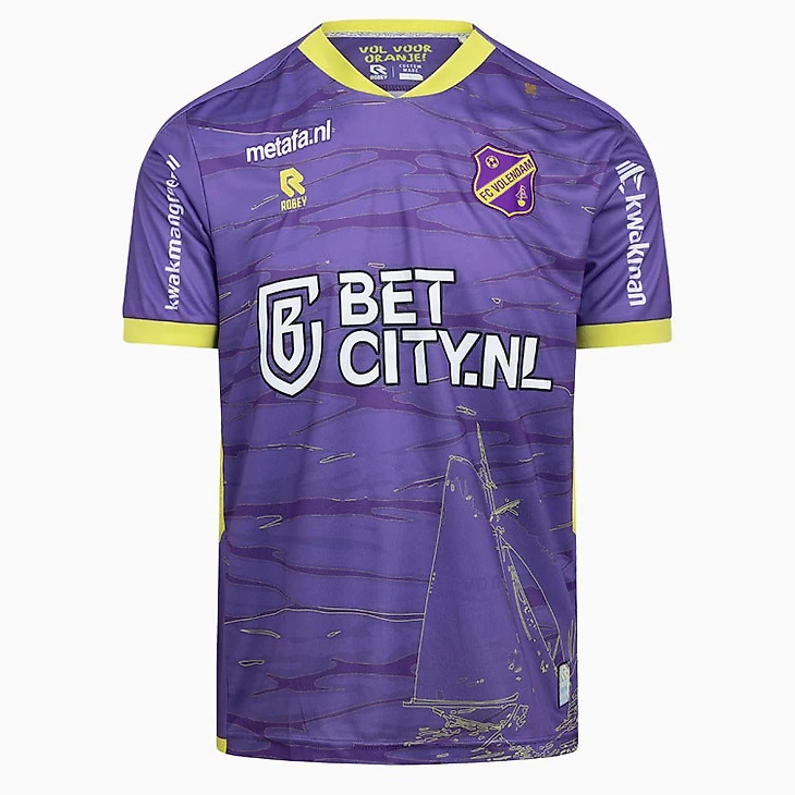Еще один новичок высшей лиги решил нескучно войти в новый сезон. Нидерландский «Волендам» решил указать на свою близость к морской теме (городок славится рыболовным промыслом). Фиолетовую форму разрезают тонкие желтые линии, создающие образ водной глади, а в нижней части формы изображен графический рисунок в виде небольшого морского судна.