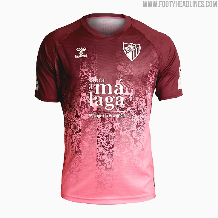 Настоящее произведение искусства от «Малаги», которая продолжает бороться за право возвратиться в Ла Лигу. Гостевые футболки выполнены в двух цветах. Верхняя часть бордовая, переходящая к низу в розовый. Джерси украшает принт, составленный из бутонов роз. И такое увлечение флористикой не случайно. Стадион клуба носит название «Ла-Росаледа», что в переводе значит розовая аллея. Дело в том, что во время возведения стадиона более 80 лет назад рядом со стадионом была плантация роз, отсюда и такое романтическое название.