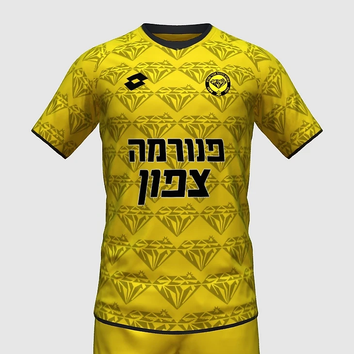 Стильный комплект из Израиля. «Маккаби» из Нетании просто расположил по всей форме клубную эмблему в виде алмаза, но получилось необычно.