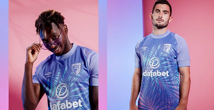 Начнем с Туманного Альбиона. «Борнмут» вернулся в Премьер-лигу и презентовал смелый дизайн выездной формы. Кроме необычного нежно-сиреневого цвета форму отличает наличие листьев пальмы, которые отсылают к набережной города Борнмут, находящегося на южной оконечности острова.