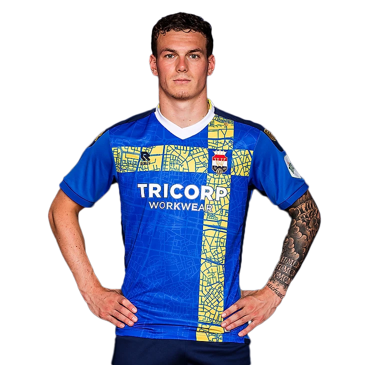 А вот «Виллем II» в прошлом сезоне покинул высший дивизион, но без красивой формы болельщиков не оставил. Гостевая форма представляет собой очередную фантазию на тему городских ландшафтов. Карта родного для клуба Тилбурга размещена на сине-желтых футболках (цвета городского флага). А эмблему клуба символично пересекает крест.
