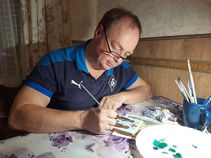 А когда заканчивается футбол, Александр приходит домой, раскладывает на лоджии стол и пишет иконы. Да-да, оператор «Крыльев» – воцерковленный человек и занимается иконописью.