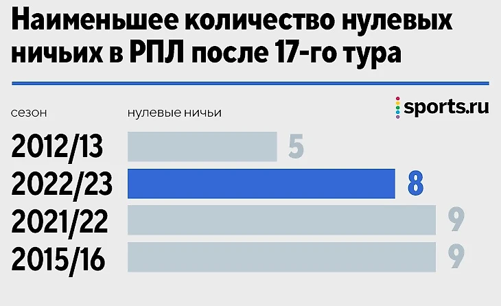 В итоге в РПЛ почти пропали нулевые ничьи.