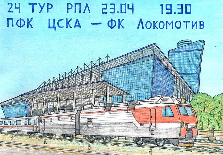 В первую очередь его интересует не сам футбол, а возможность рисовать и творить. Ему очень нравятся графические объекты, он любит железные дороги и дома. Это можно заметить по его афишам. Основная идея была в том, что команда играет домашние и гостевые матчи. И дома стадион один и тот же, а в гостях – нет. Мы погружали Алексея в футбольный мир, объясняли, что символизирует того или иного соперника. Например, «Локомотив» – это железные дороги, которые Алексей очень любит, поэтому пришли к тому, что можно изобразить их на афише.