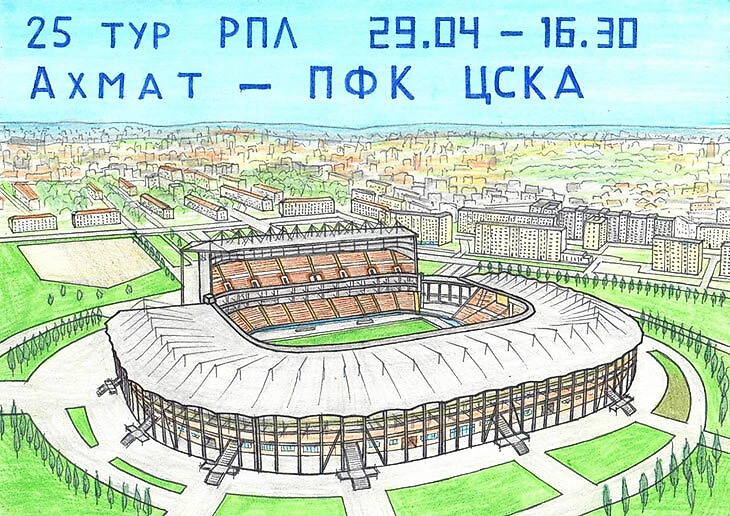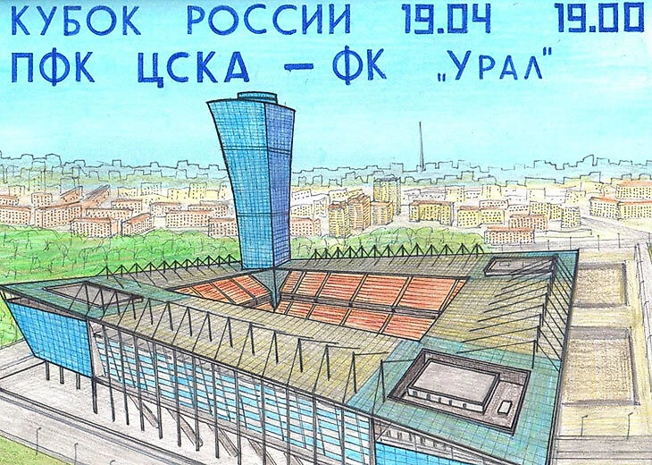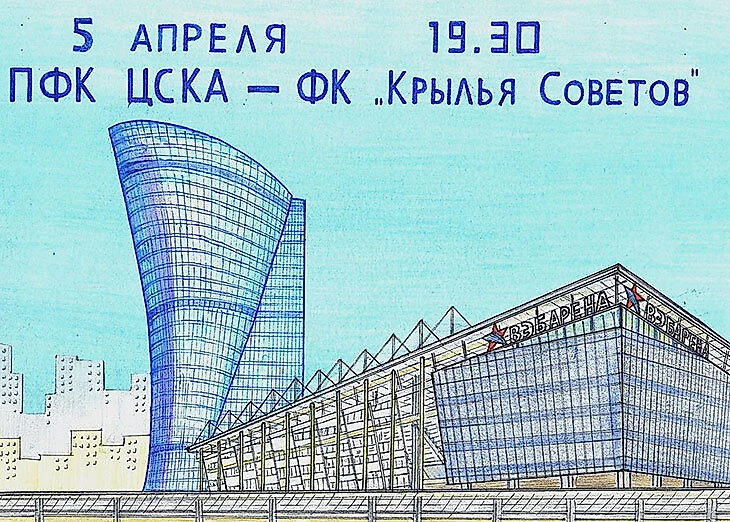 Репортаж в соцсетях увидел ЦСКА и предложил Алексею рисовать афиши к матчам. Он сначала не знал, как реагировать. А я обрадовалась и предложила ему попробовать. Мы приехали познакомиться с сотрудниками клуба и посмотреть стадион, ведь раньше Алексей здесь никогда не был. Клуб рассказал нам о графике матчей, и началась работа.