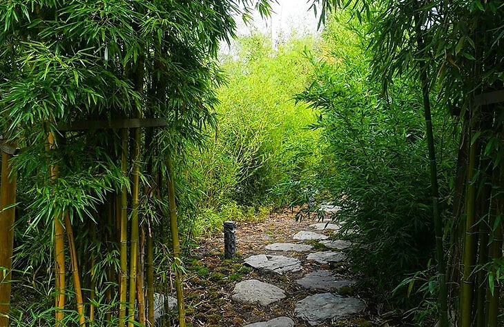 В мире произрастает около 600 видов бамбука. Это многолетнее вечнозеленое растение может достигать 40 м в высоту и 80 см в ширину. В бамбуковой роще Японского сада произрастает 8 видов бамбука: гигантский золотой, зеленый, черный, японский, карликовый, мелколистный, гигантский зеленый и золотистоборозчатый. Шорох листвы от дуновения ветра способствует расслаблению.