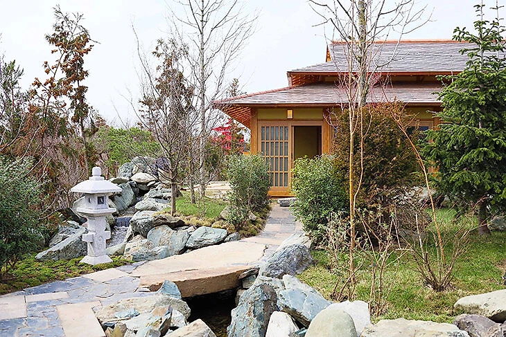 Чайный дом в Японском саду – здание, выполненное в архитектурном стиле минка. Состоит из трех чайных комнат, предназначенных для организации и проведения традиционных чаепитий.