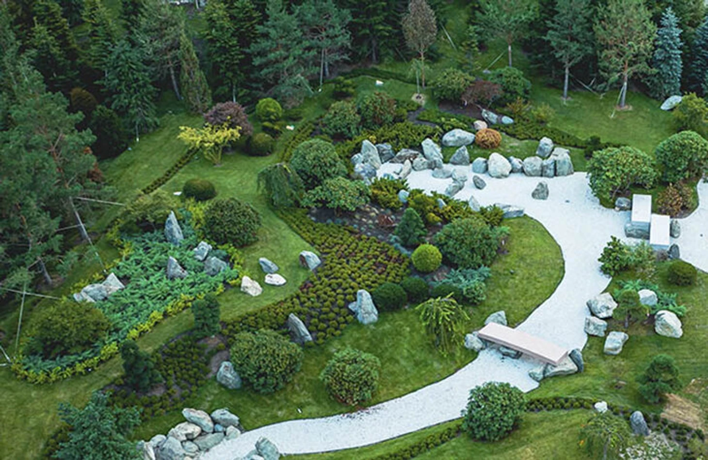 Дзэн-сад – миниатюрный стилизованный пейзаж с композициями из камней, гравия, белого песка и растений. Волнистые линии на гравийной поверхности обладают медитативным эффектом.