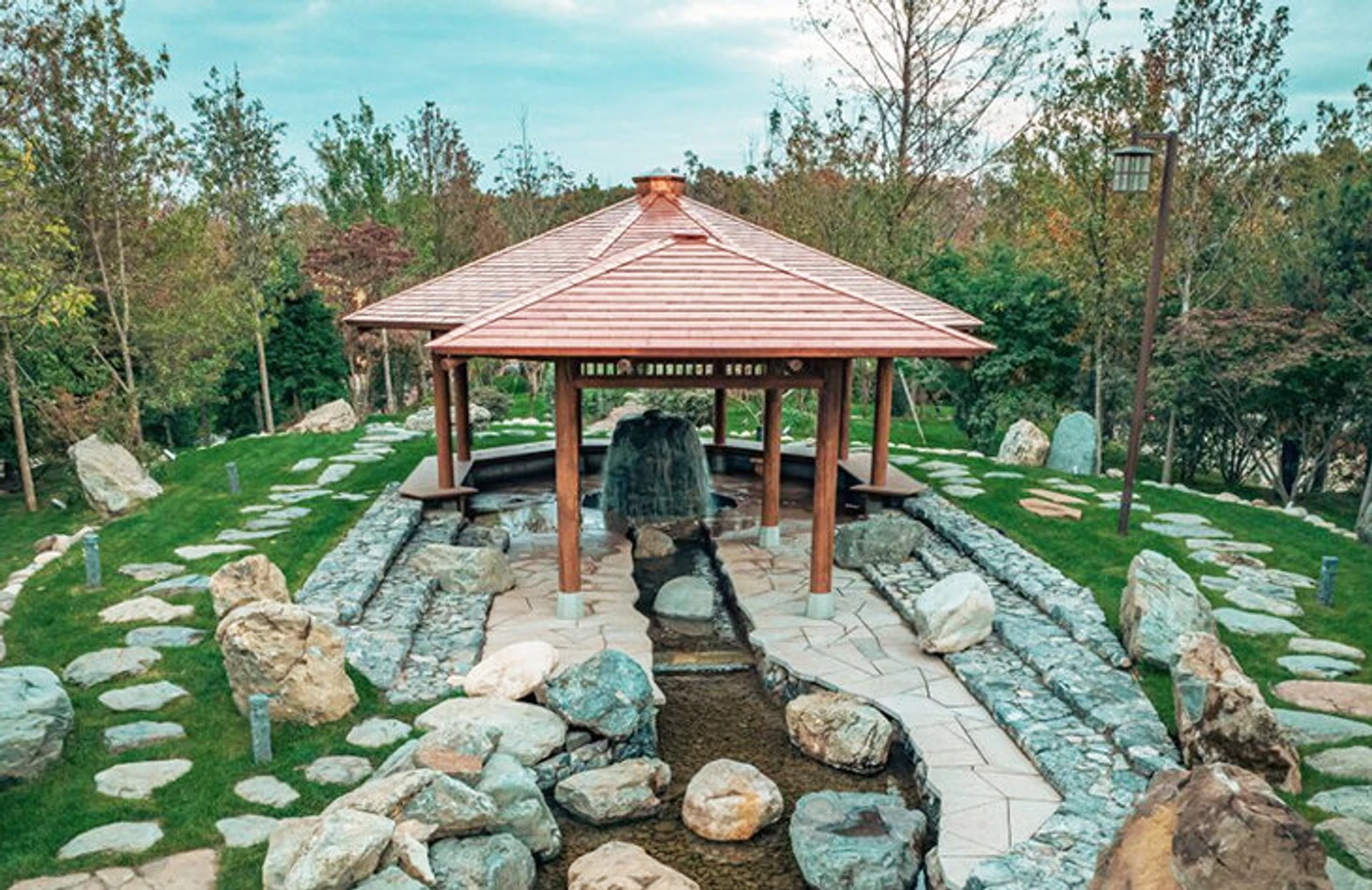 В павильоне ощущаются наполняющие его безмятежность и гармония.