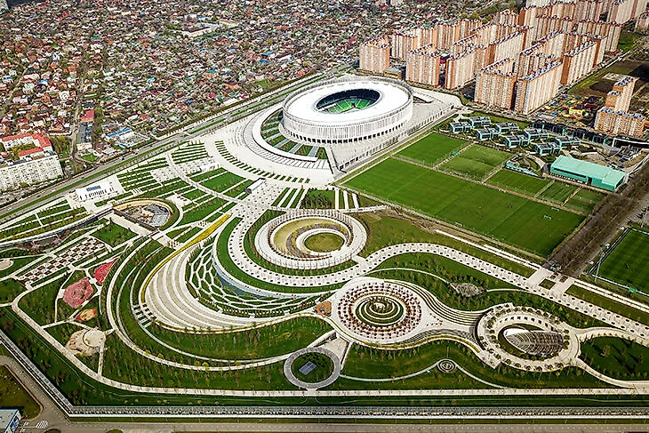 История парка началась более пяти лет назад – он окружил стадион «Краснодара» в сентябре 2017-го. Кратко напомним, как все развивалось: раньше на месте парка были сельскохозяйственные поля и цветочный рынок. После строительства стадиона Сергей Галицкий выкупил земли вокруг арены для современного парка. Спустя год работ состоялось техническое открытие, а в последующие несколько лет парк только расширялся.