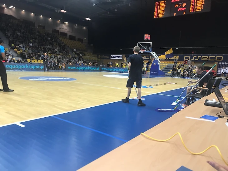 Вторая четверть началась с аналогичной задержки из-за неполадок с таймером. Вдобавок ливень пробил крышу, и на паркет начала капать вода. Не глобально, но мальчики со швабрами просидели всю игру возле проблемного участка и терли площадку при каждом удобном случае.