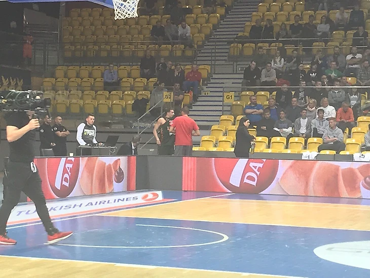 Еще один болельщик «Локо» сидел за скамейкой краснодарцев. Он фанат футбольный, но во время недельного выезда нашел время на баскет. Спасибо ему за это. Персональные болельщики Матеуша Понитки расположись на обеих трибунах, сосчитать их было сложно.