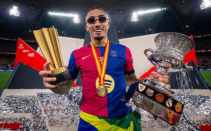 «Реал» и «Барселона» сотворили настоящий новогодний праздник, выдав триллер в матче за Суперкубок Испании. Килиан Мбаппе забил уже на 5 минуте, но Ламин Ямаль ответил своим голом на 22 минуте. А дальше понеслась… Три гола забила «Барса» за 20 минут, и команды подошли к перерыву со счетом 1:4. Сразу после перерыва Рафинья положил пятый, а через 10 минут Войцех Щенсный схлопотал красную карточку, и почти сразу после этого забил Родриго. И дальше почти 40 «сухих» минут - между прочим, самый большой отрезок в матче без голов. 2:5 и очень достойная победа «блауграны»!