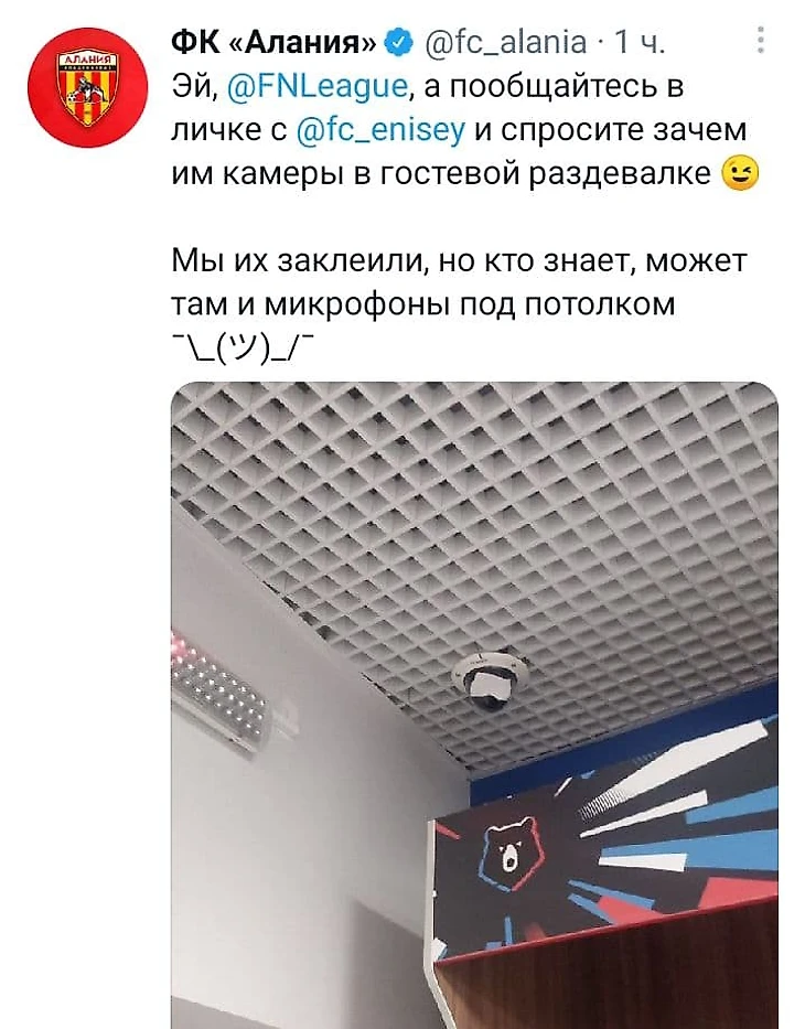 Игроки «Алании» возмутились наличием камеры видеонаблюдения в гостевой раздевалке на стадионе «Енисея»