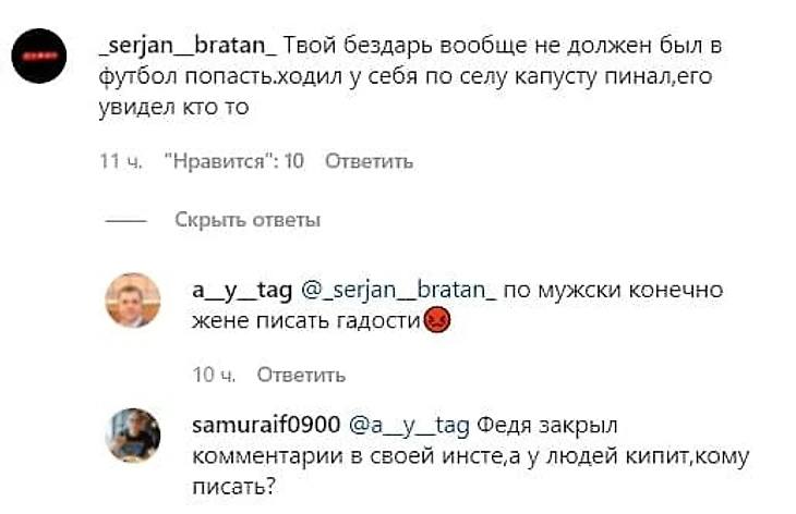 Федор Кудряшов закрыл комментарии на своей странице в инстаграме, приходится отдуваться его жене