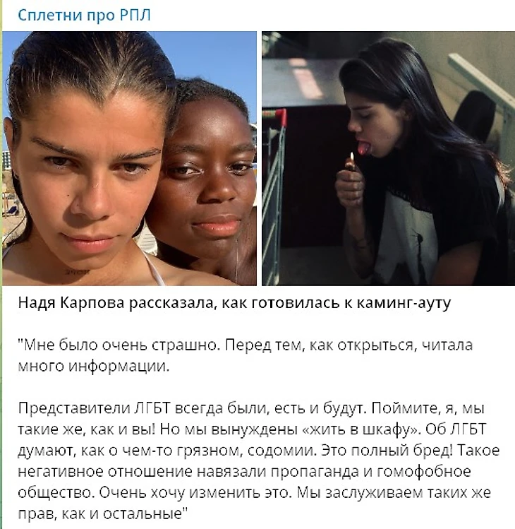 Очередное признаение от Карповой. Она долго готовила свой каминг-аут