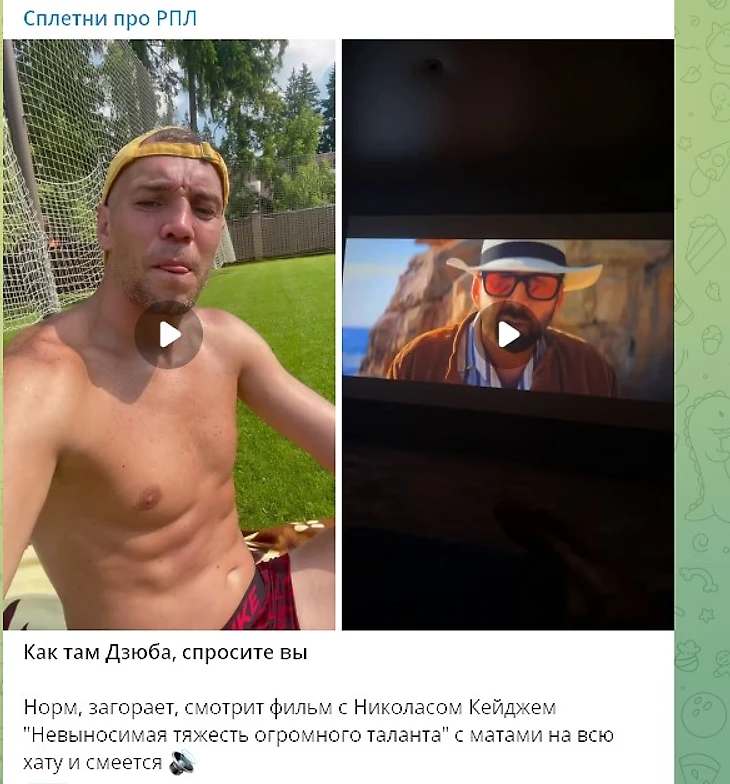 Как там Дзюба, спросите вы. Норм, загорает, смотрит фильм с Кейджем с матами на всю квартиру и смеется