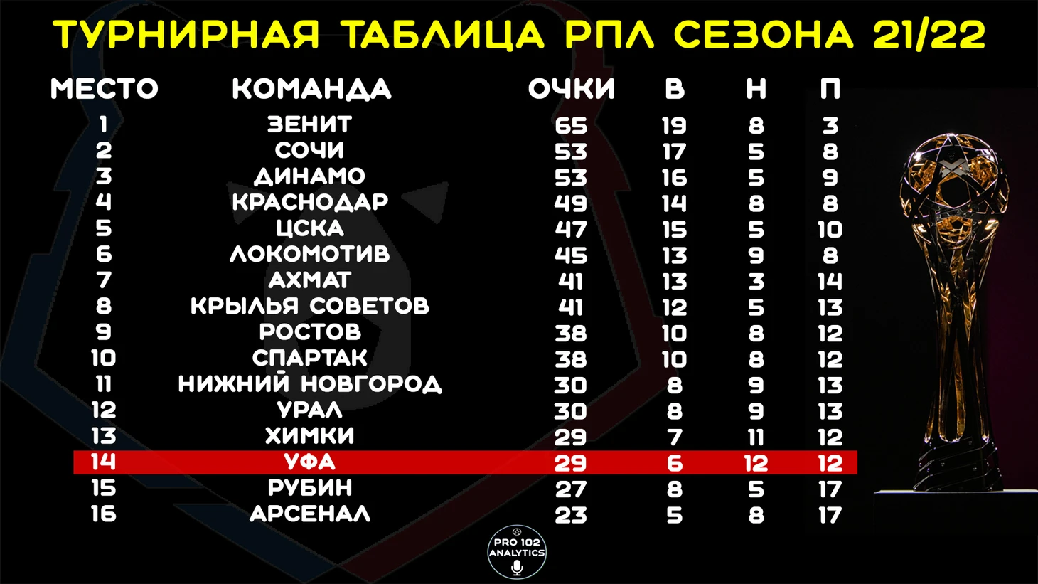 Всем привет! Настало время тактического анализа сезона! Что говорит статистика? Заслужила ли башкирская команда вылет? Кто виноват?