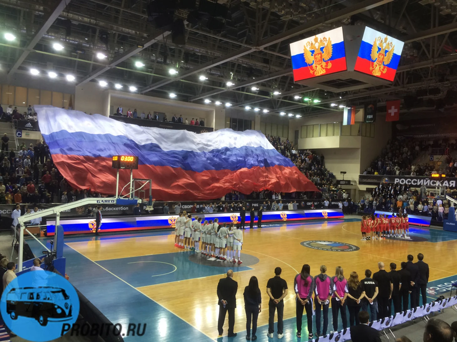 За пятнадцать минут до начала встречи зал уже практически наполнился и те, кто успел, стали свидетелями лазерного шоу. Для Курска, конечно, диковинка. Хотя помню, что во время Финала четырех Кубка России проводили песочное шоу. Технический прогресс! К исполнению гимна подтянулись болельщики, которых не пустили на лазерное шоу (двери нельзя было открывать для соблюдения темноты в зале). Во время исполнения российского гимна на трибуне С был развернут большой российский триколор. Выглядело красиво. Единственное что я не понял, так это исполнение самого гимна. Обычно на соревнованиях исполняется один куплет с припевом; в особых случаях ставят запись гимна целиком, что к третьему куплету все уже зевают и смотрят на часы, но в Курске спели ДВА куплета! С таким я ранее не сталкивался, и до сих меня интересует этот вопрос, может что-то новое?