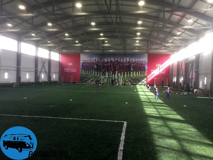 Я не ожидал, что на территории будет столько футбольных площадок и территория для игры в пейнтбол. Помимо полей для большого футбола, я посетил мини-поля для формата 8х8 и футбольный манеж, где расположился филиал футбольный школы ФК Барселона. Куча детишек отрабатывали упражнения с мячом под пристальным взором тренеров и родителей. Крутяк! На улице, кстати, параллельно проходила тренировка детей чуть старшего возраста. Внутри манежа также был обнаружен офис футбольного клуба “Зенит” Москва и самое главное буфет, куда я решил сходить в перерыве). Далее я отправился к полю, которое мне было интереснее больше всего, т.к. именно там должен был состоятся матч третьего дивизиона между московским “Зенитом” и подмосковной командой “Химки-м”.