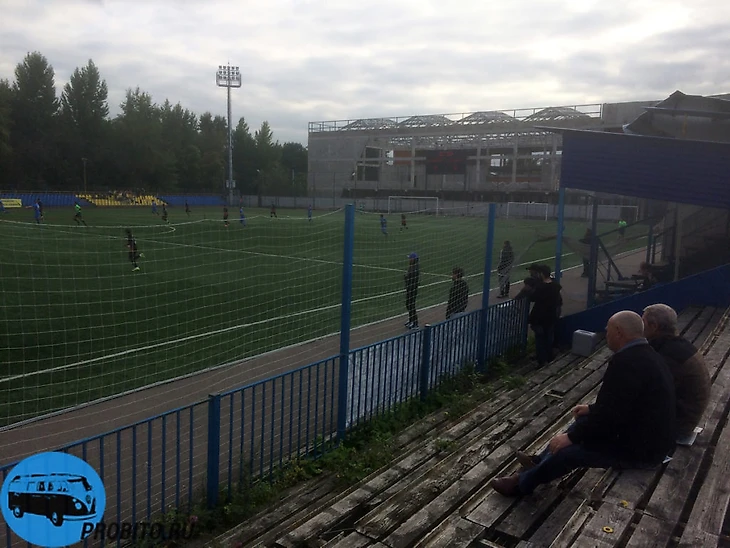 Стадион “Старт” в Реутове можно считать уникальным, поскольку футбольное поле разделяет две эпохи: деревянных и пластиковых сидений. Непонятно как так вышло, но одна из трибун претерпела капитальный ремонт, а другая продолжает гнить и зарастать травой. Именно на стороне деревянной трибуны располагаются VIP-ложи и скамейки запасных, выполненные в английском стиле. Административные штабы и запасные игроки команд сидят близко друг другу и во время жарких встреч резервным арбитрам приходится стоять между двух огней. Искусственная полянка, где проходил матч, соседствует с полем для матчей формата 8х8 (там во время игры тренировались девчонки из местного клуба), а также натуральным полем, которое было аккуратно выстрижено и допуск на него строго запрещался.