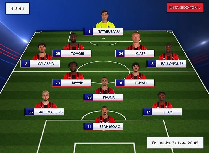 Тот же Пеппе Ди Стефано из Sky Italia рассказывает: Балло-Туре и Крунич имеют высокие шансы выйти в первых 11-ти Россонери сегодня. В частности Пиоли может предпочесть Крунича Диасу по двум причинам: экс сливочный еще не на 100% в кондициях, Стефано хочет ограничить влияние Брозовича на игру Нерадзурри, а босниец является более оборонительным кальчаторэ, нежели Браим.