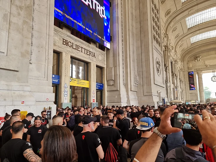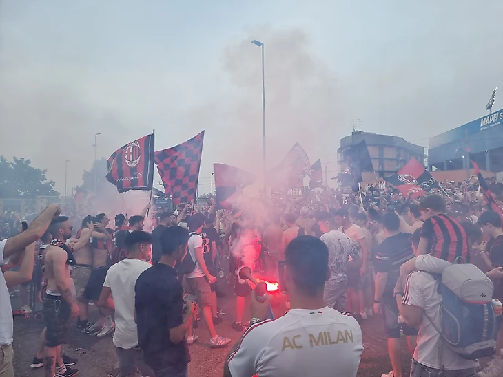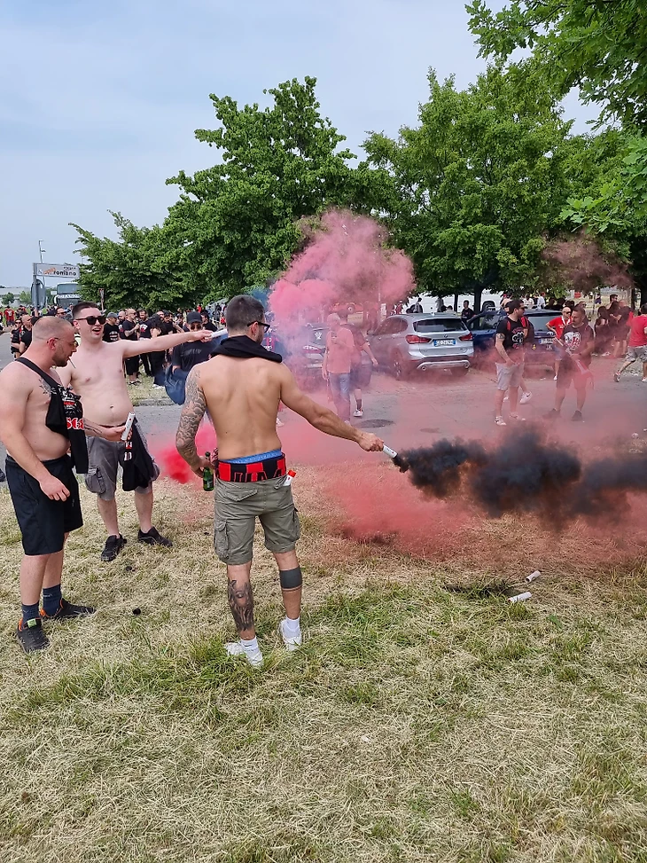 Curva Sud Milano и других регионов Италии собиралась примерно за 4 часа до стартового свистка. Ребята прятались в в тени деревьев, там как температура колебалась в районе 34-35 градусов.