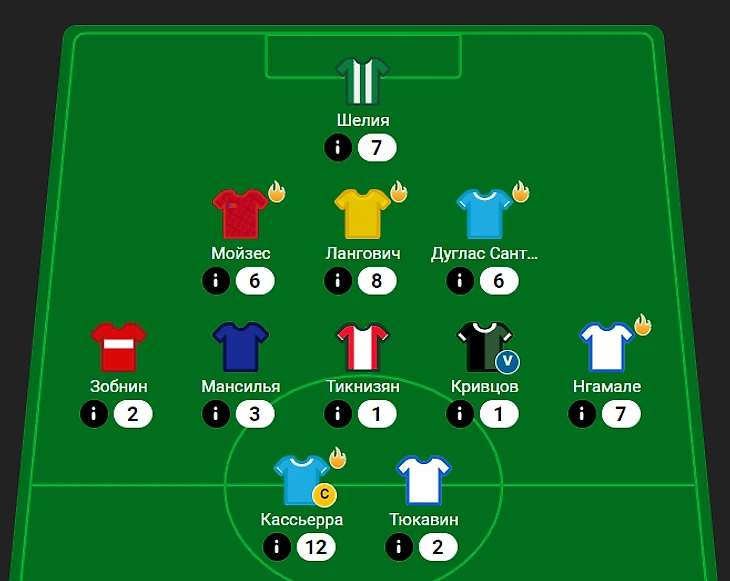 Мойзес - 6 очков, Лангович - 8 очков, Дуглас Сантос - 6 очков. Жалею только, что Лангович не занес сухой матч, с такими Крыльями этого можно было бы ожидать. Мойзес и Дуглас принесли то, что должны были, ни больше ни меньше, они и остаются на следующий тур;