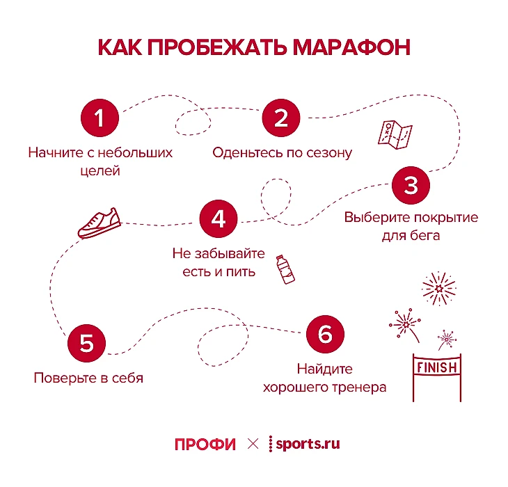 Важно понять, что сразу 42 км вы не пробежите. И даже полумарафонские 21 км. Нужно начинать с небольших забегов, постепенно увеличивая дистанцию.