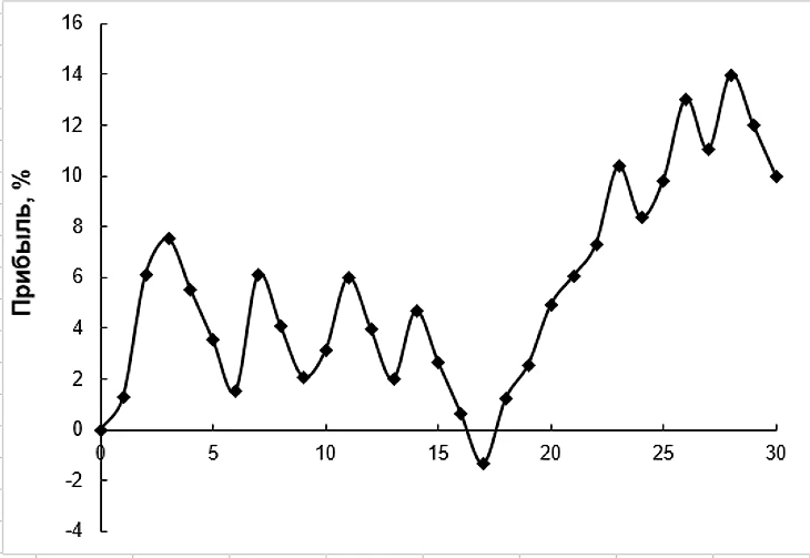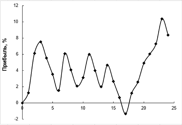 2 тур получился достаточно предсказуемым, что отразилось на просадке прибыли (рисунок). Однако в 3 туре снова было много матчей, в которых андердоги одерживали победу или играли вничью с фаворитом матча. В итоге за весь групповой этап было сыграно 24 матча, из которых в 14 прошла бы ставка победа или ничья андердога.