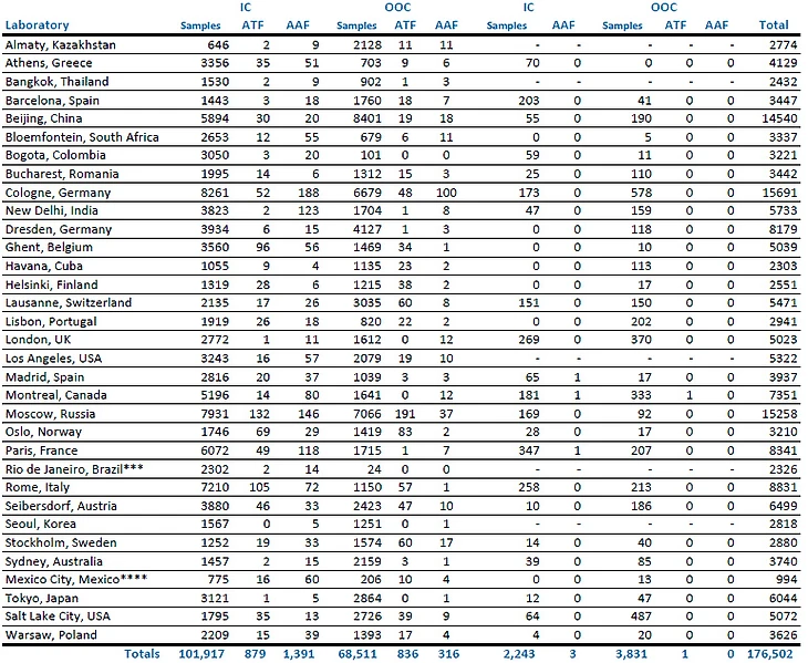 Эти цифры не являются секретом, WADA каждый год публикует данные по количеству тестов в видах спорта и тестов в лабораториях. Внимательные читатели вспомнят, что на нашем сайте эти данные также публиковались.