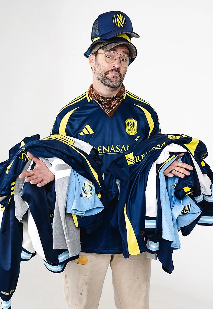 Вдохновленная яркой художественной сценой Нэшвилла, майка выполнена в темно-синей основе с солнечно-желтыми акцентами. Слово «Nashville» на задней части воротника объединено с линиями звуковой волны музыки в форме сердца. Прекрасная детализация.