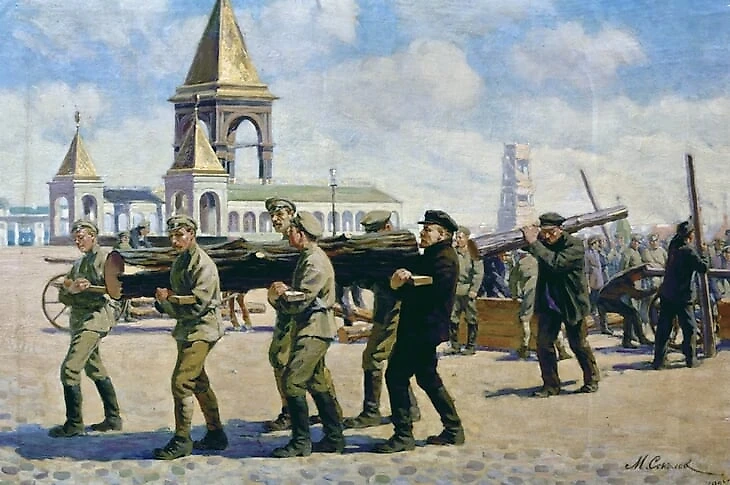 Художник М. Соколов. «В.И.Ленин на Всероссийском субботнике в Кремле 1 мая 1920 года». Великолепная пятерка и вратарь!
