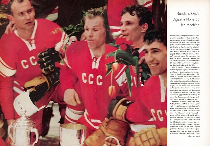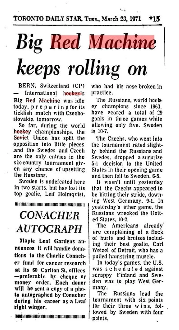Так – или почти так – обычно описывают в нашем интернете ПЕРВОЕ упоминание хоккейной «Красной машины» в североамериканской прессе.