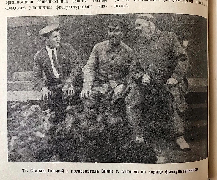 Однако открываем журнал «Физкультура в школе» и понимаем, что фотографий тогда сделали несколько. И Сталин с Горьким сидели не вдвоем – просто потом третий оказался лишним.