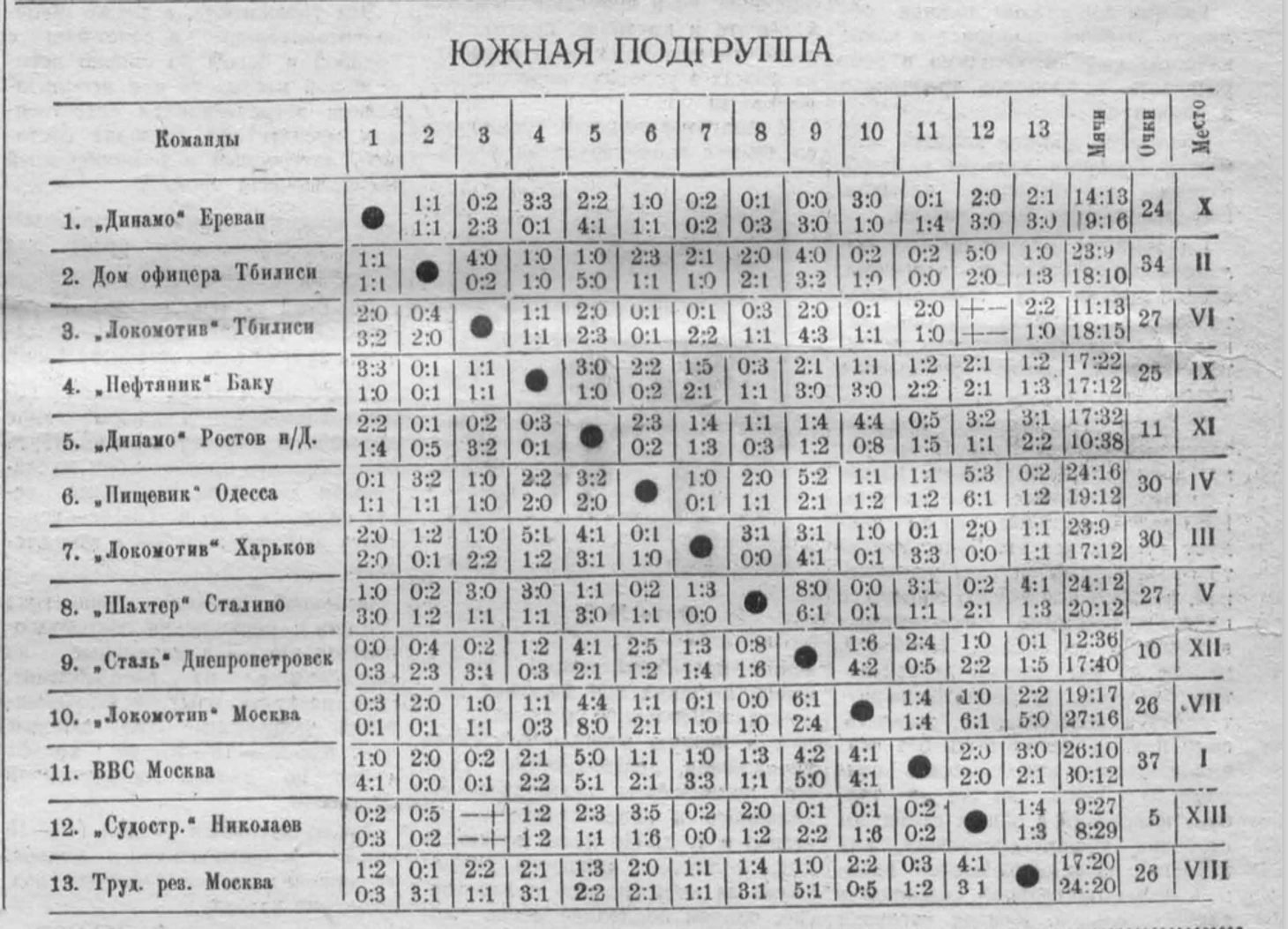 «Команда <ВВС> крепла, мужала, и с нами стали считаться самые грозные противники. Пришел успех. Мы выиграли соревнования в Южной зоне, опередив такие сильные коллективы, как ОДО (Тбилиси), «Шахтер» (Сталино), «Динамо» (Ростов), московский и харьковский «Локомотив», и в финале должны были встретиться с победителем Восточной зоны – московским «Пищевиком», во главе которого стоял очень опытный тренер Константин Квашнин.