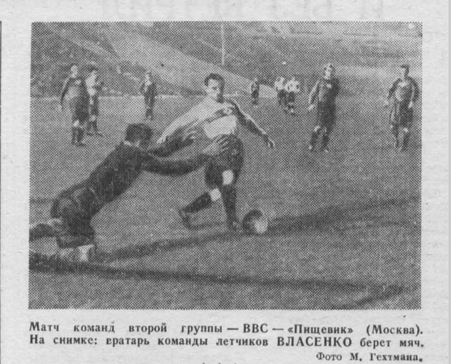 В конце матча при счете 2:2 «дважды Власенко взял хорошие мячи от Балабы и Эпштейна. Затем центр защиты ВВС Леонов спас покинутые Власенко ворота».