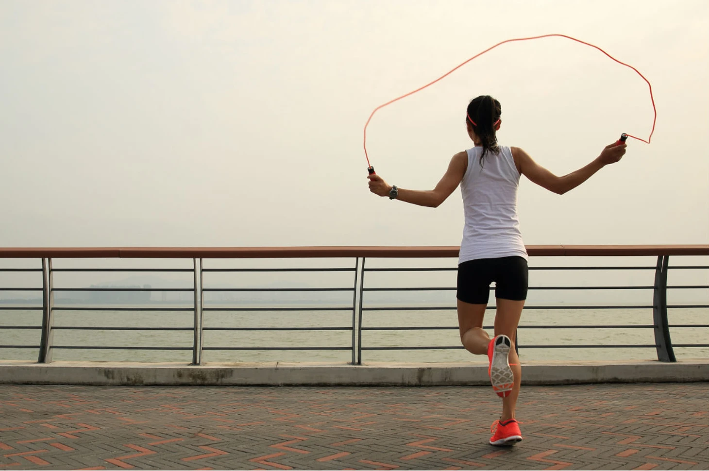 Прыжки со скакалкой. Эффективное плиометрическое упражнение. Рекомендуется начинать с двухминутных прыжков, постепенно увеличивая время. Если сложно, можно разбить эти две минуты на отрезки по 10 - 30 секунд.