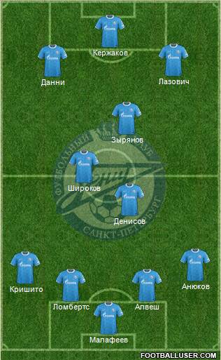 «Зенит» (версия ProZenit Open Blog): Малафеев – Анюков, Алвеш, Ломбертс, Кришито – Денисов, Широков, Зырянов – Лазович, Данни – Кержаков