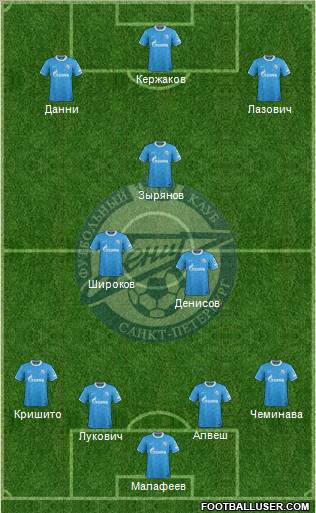 «Зенит» (версия ProZenit Open Blog): Малафеев – Чеминава, Алвеш, Лукович, Кришито – Денисов, Широков, Зырянов – Лазович, Данни – Кержаков