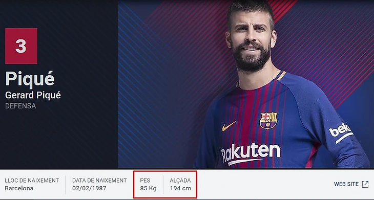 Для сравнения, Жерар Пике имеет рост в 194 см, однако весит на 9 кг легче - 85 кг. Колумбиец на 11,2% тяжелее испанца.