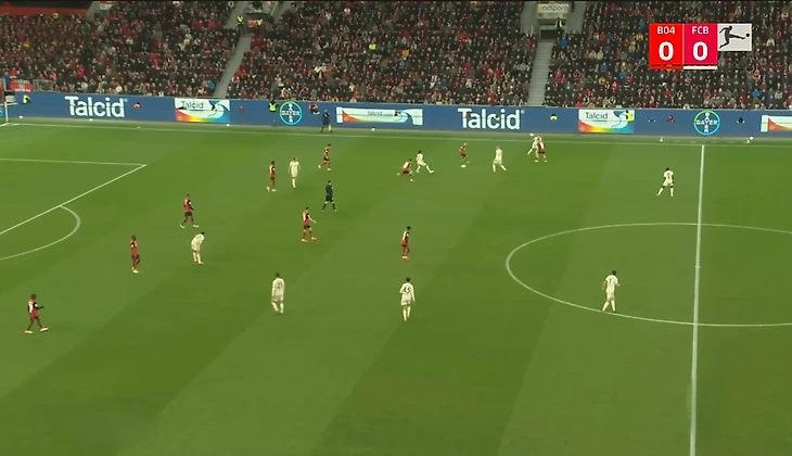 Из-за высокого персонального прессинга «Байера» «Бавария» рассыпалась уже в первом тайме. Единственной опцией продвижения стали длинные передачи Нойера и, конечно, Мануэль остаётся лучшим вратарем в аспекте игры на мяче, но даже он отдал 7 неточных лонгболлов к ряду в течение первых 30 минут тайма.