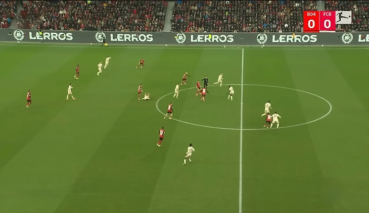 Стоит отметить, что самый острый эпизод случился после подачи Инкапье, а не Гримальдо или Фримпонга. На 25 минуте Павлович неудачно обработал мяч в центре поля, находясь спиной к воротам, в результат чего «Байер» получил огромное численное преимущество в моменте транзишна.