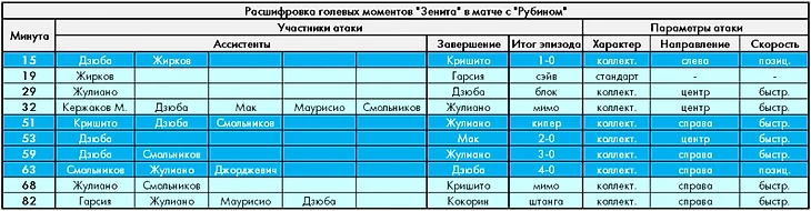 Приятно отметить, что «Зенит» вновь перекрыл собственный созидательный максимум, придумав сразу 10 голевых моментов у чужих ворот. Кроме того, матч с «Рубином» оказался для команды Луческу самым позитивным с начала сезона, то есть лучшим и по значению креативной дельты (плюс 8).