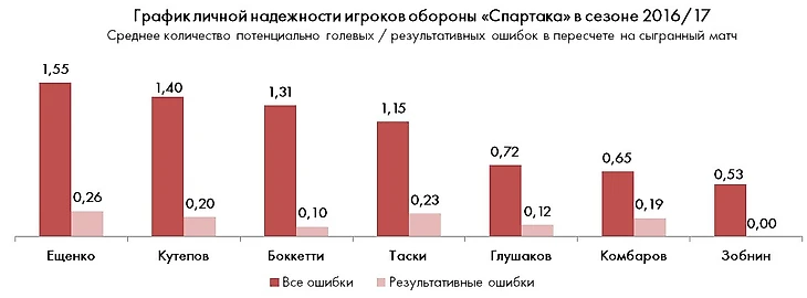Что касается персональной статистики игроков спартаковской обороны, то ситуация вырисовывается следующая: