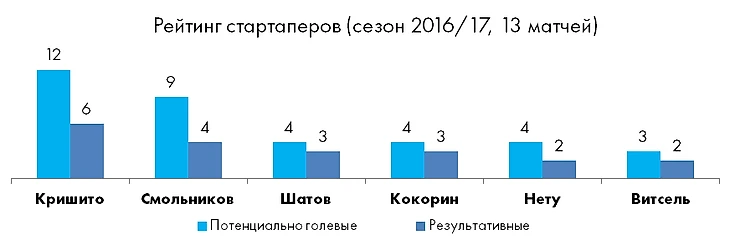 За активную помощь атаке персонально стоит отметить Кришито, с передач которого начались сразу три результативные комбинации «Зенита». После этого матча именно Миммо перехватил у Игоря Смольникова лидерство во внутрикомандном рейтинге лучших стартаперов текущего сезона.
