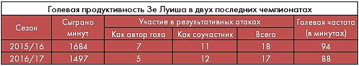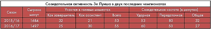 По сравнению с прошлым сезоном передаточная активность Зе Луиша значительно возросла, и ассистировал партнерам в ключевых эпизодах он почти втрое чаще Смолова (каждые 50 игровых минут против 148).