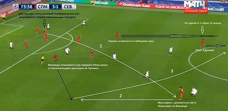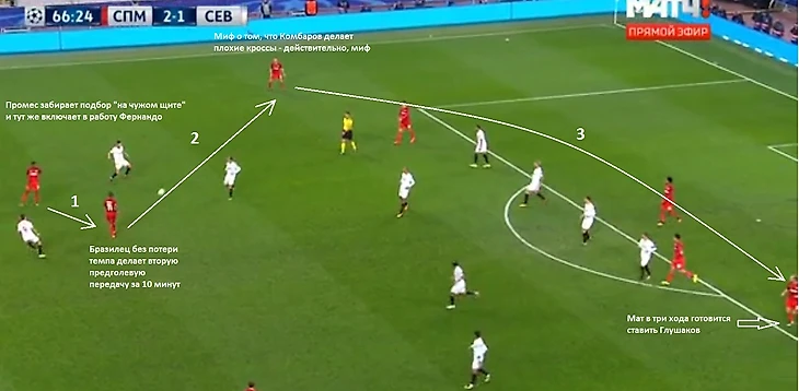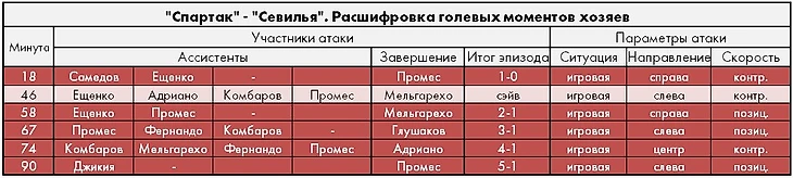 Понятно, что эффективность спартаковской атаки оказалась почти стопроцентной, но о какой-то великой удаче говорить не приходится. А вот поразиться масштабу стихийных бедствий в обороне «Севильи» и ее неготовности к вертикальным контратакам хозяев можно вполне, хотя и с редкими позиционными атаками команды Карреры испанцы абсолютно не справились.