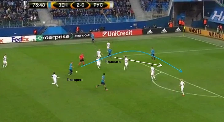 Александр Кокорин вроде бы находился в тени, но бледной тенью самого себя уж точно не был. На его счету три предпоследние передачи при голевых моментах и умнющий «черпачок» на Кришито (итальянец лишь по воле случая не сумел обработать мяч, оказавшись с глазу на глаз с вратарем «Русенборга»).