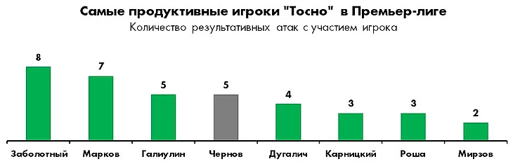 Учитывая, что Чернов является единственным полевым в составе «Тосно», отыгравшим без замен во всех 16 турах, заместить его без потери качества (во всяком случае, с точки зрения наступательного функционала), скорее всего, не удастся.